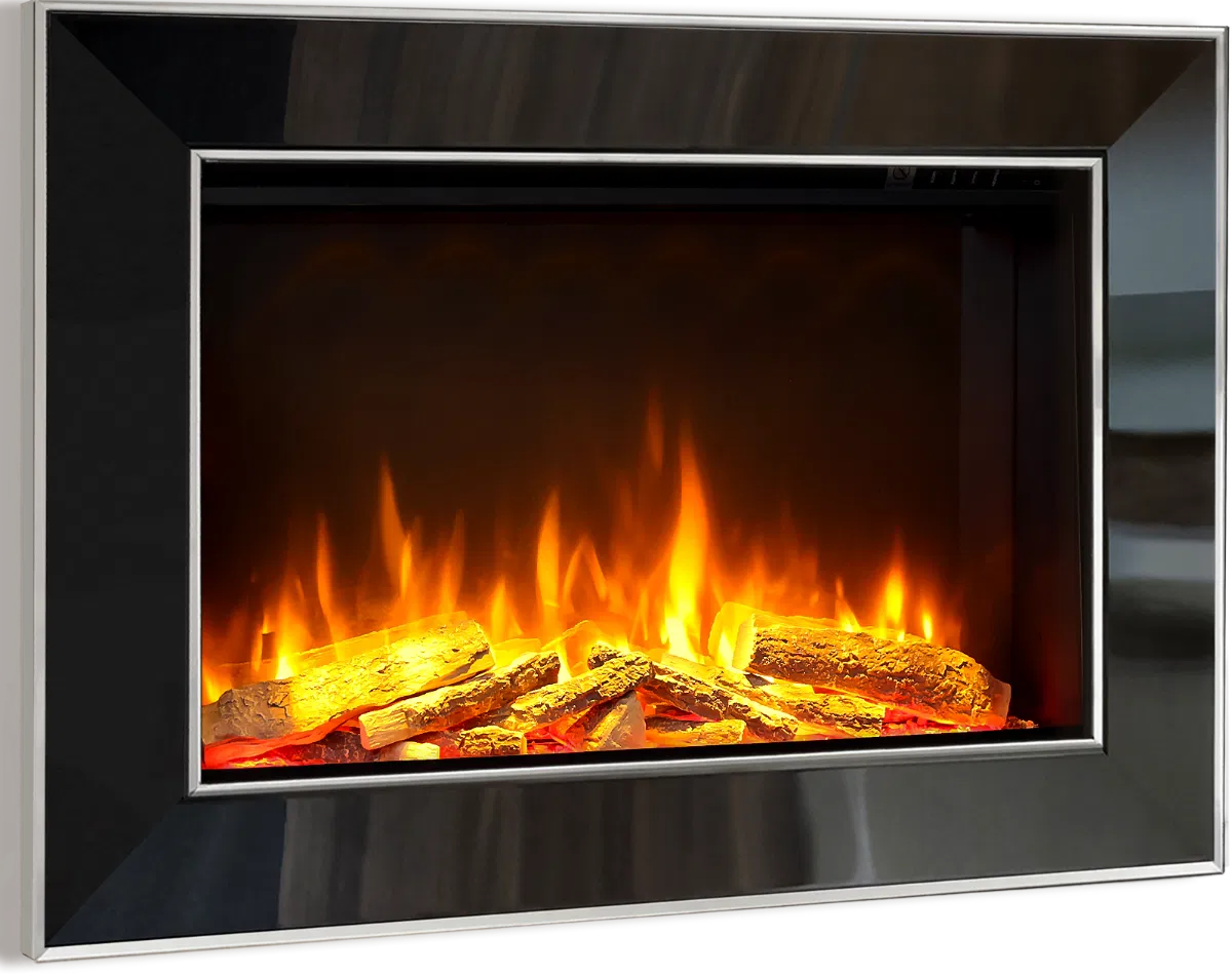 DLX Vader 750 is a glass-fronted wall inset electric fire featuring the stylish ‘Vader’ Black Nickel & Chrome plated steel fascia. This fire comes with Smart connection capability and innovative technology. The fuel effect consists of realistic natural flames, and authentically designed woodland logs placed over a blaze underbed living embers. The flame speed can be easily controlled to suit your desired mood and preference.