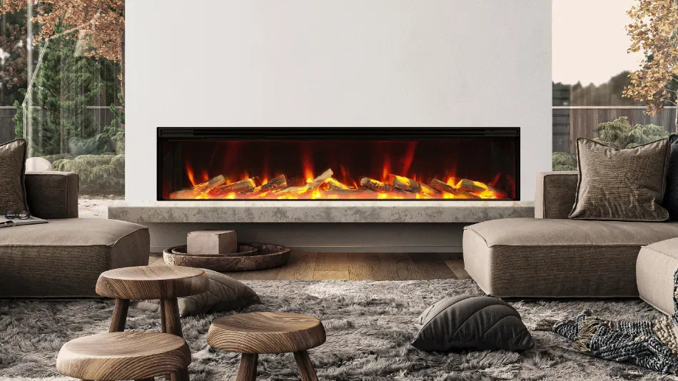CELSI SMART Electriflame Virtual Reality fires. Electriflame VR Commodus S1600 is a 3 sided glass Smart fire offering the perfect slimline built-in solution for your feature wall.